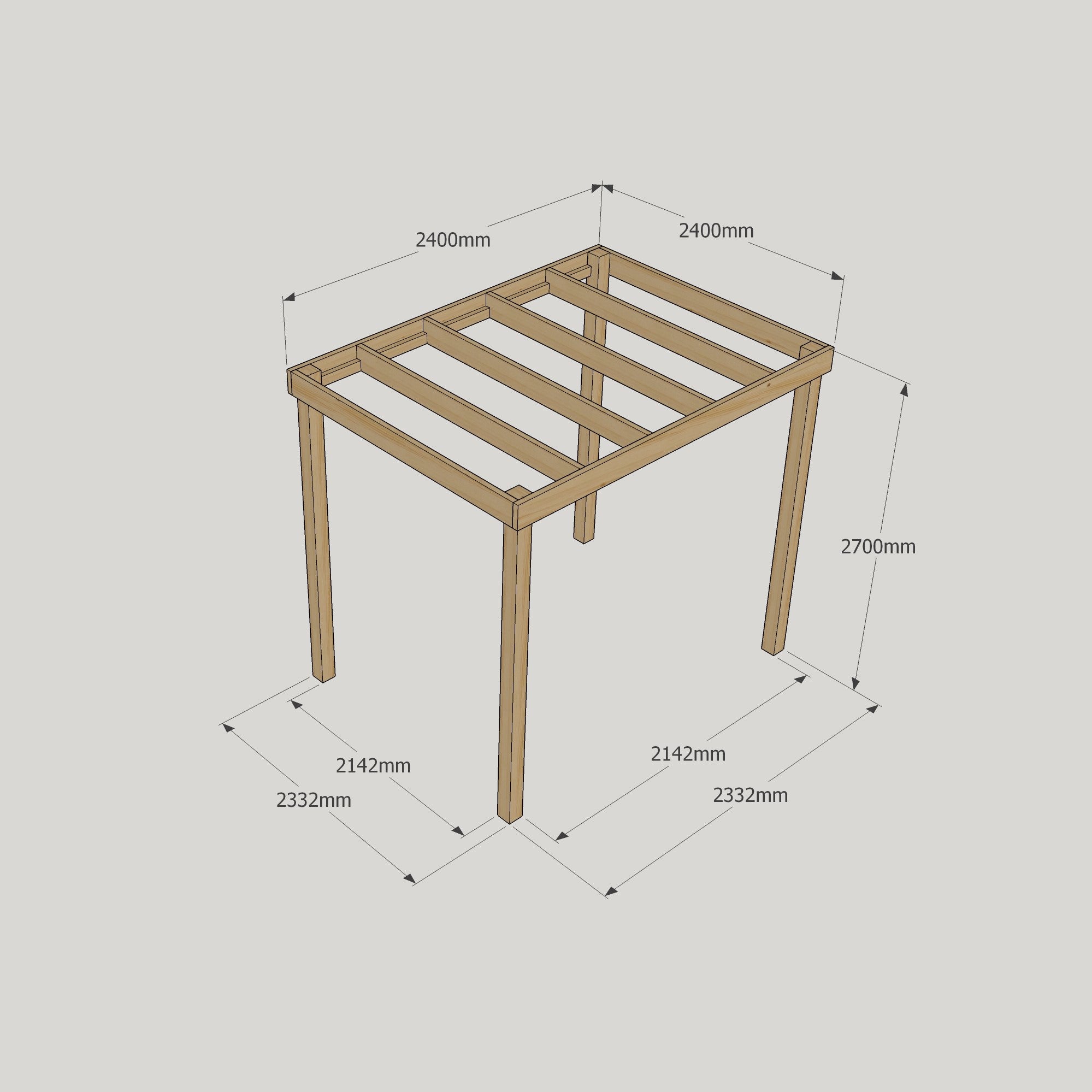 Freestanding Box Pergola - Rustic Brown - 2.4m Width x 2.4m Length - Clearance Grade
