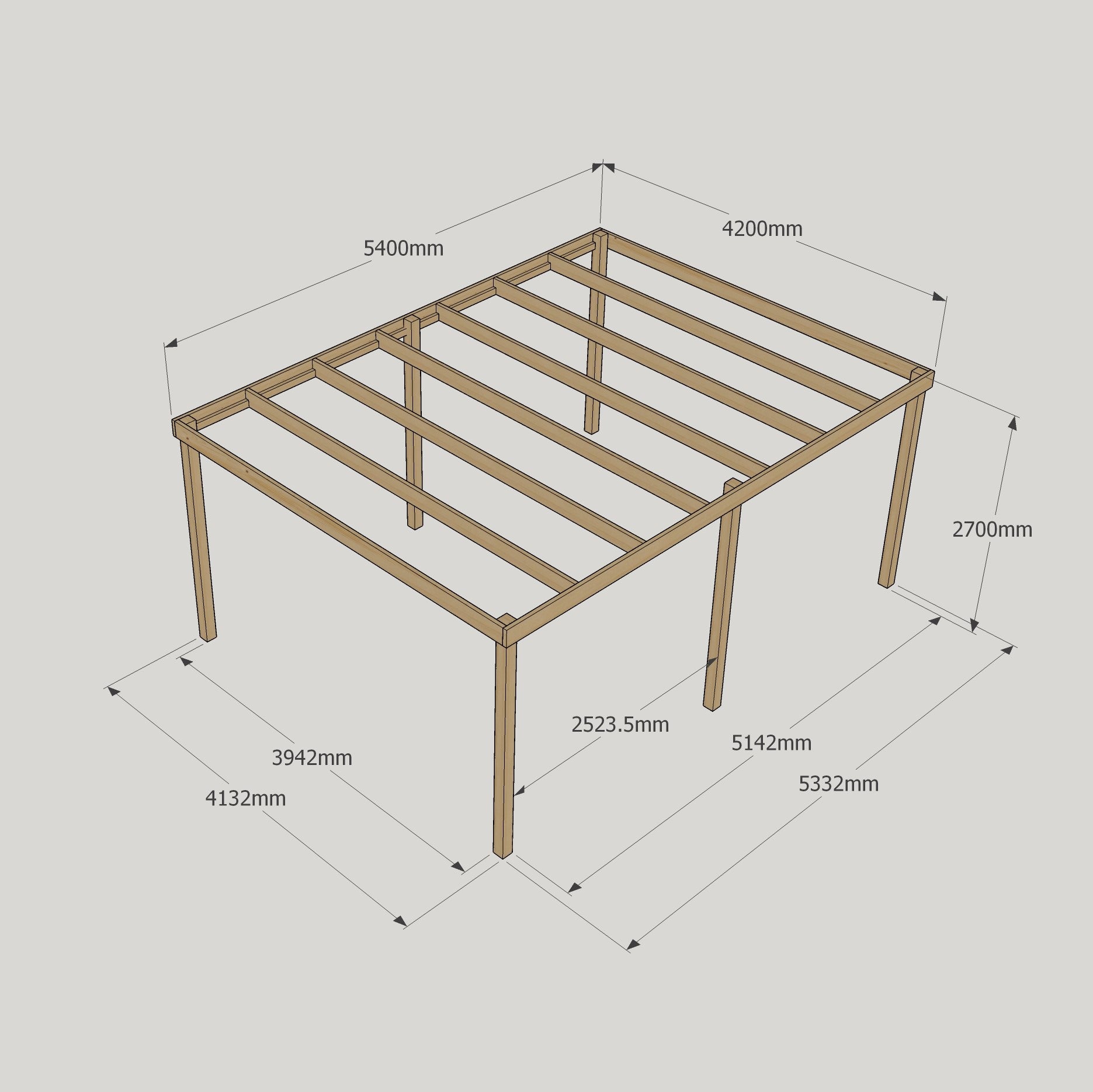 Freestanding Box Pergola - Rustic Brown - 4.2m Width x 5.4m Length
