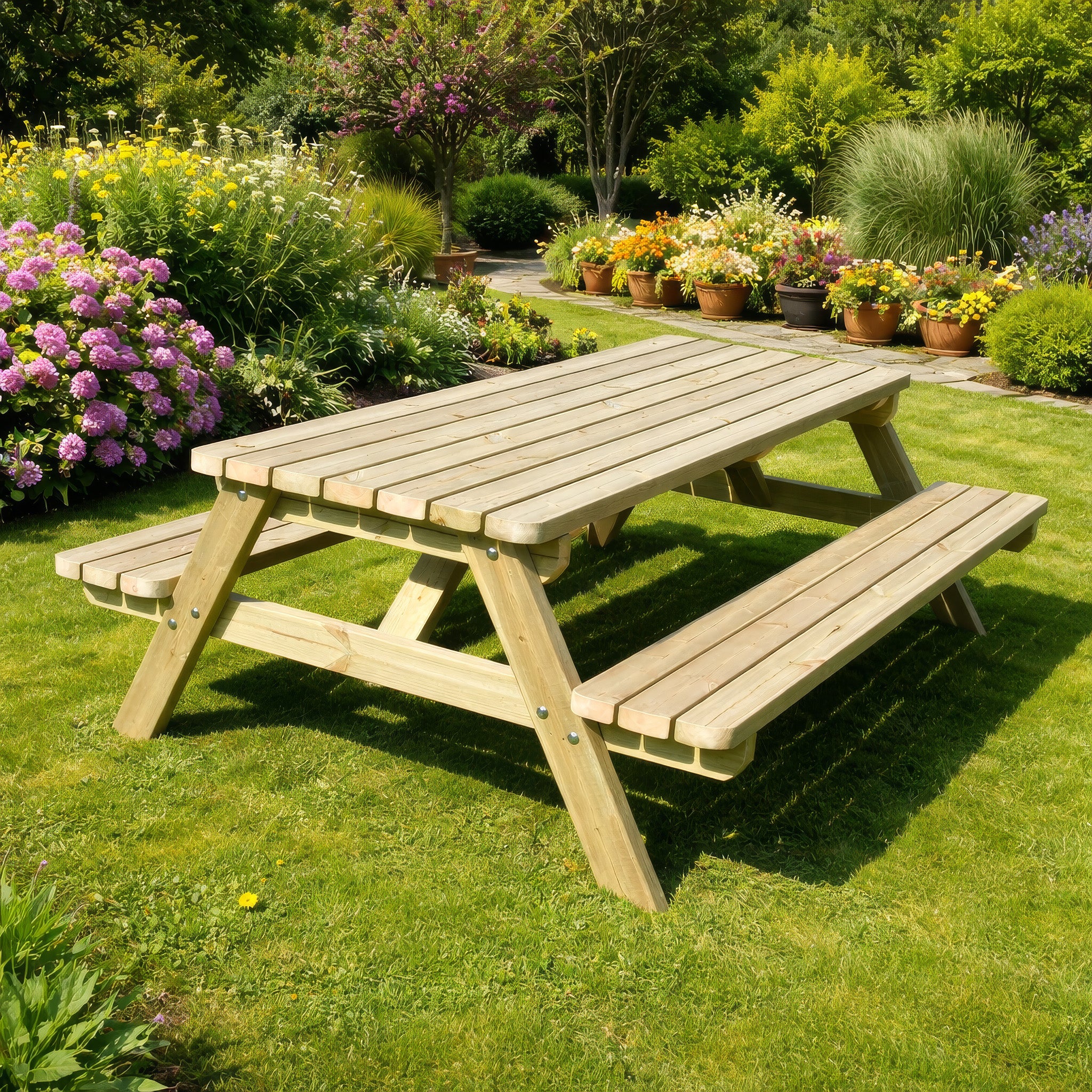 Available in a choice of light green or rustic brown finishes, the pergola can be styled to complement a wide range of garden settings.