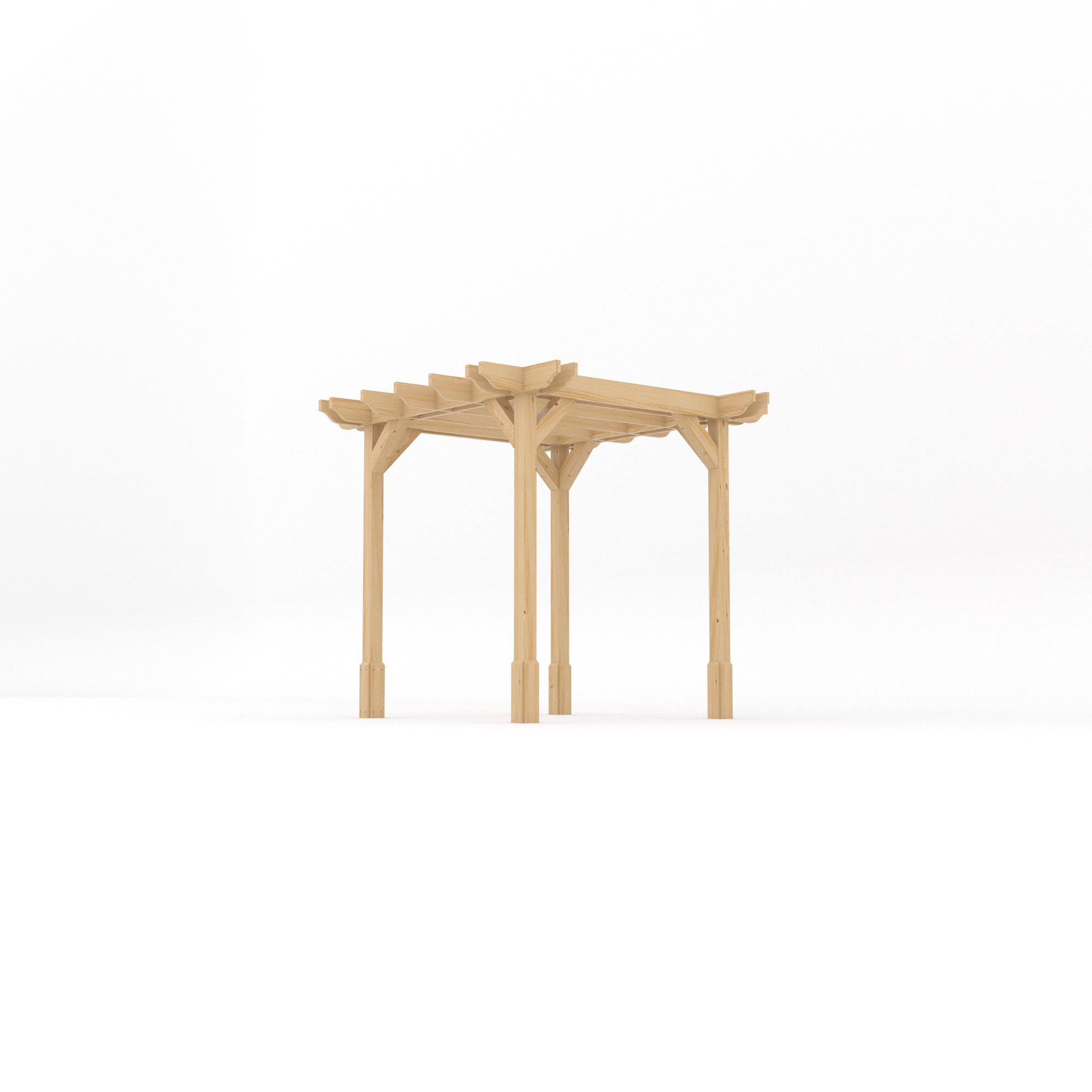 Built with a full notched design for easier, more precise assembly, along with a double corner configuration and post section braces for added strength and stability, this pergola offers both structural integrity and a refined finish. It also includes pedestal panels around the base of each corner post, creating a more solid, high-end appearance.