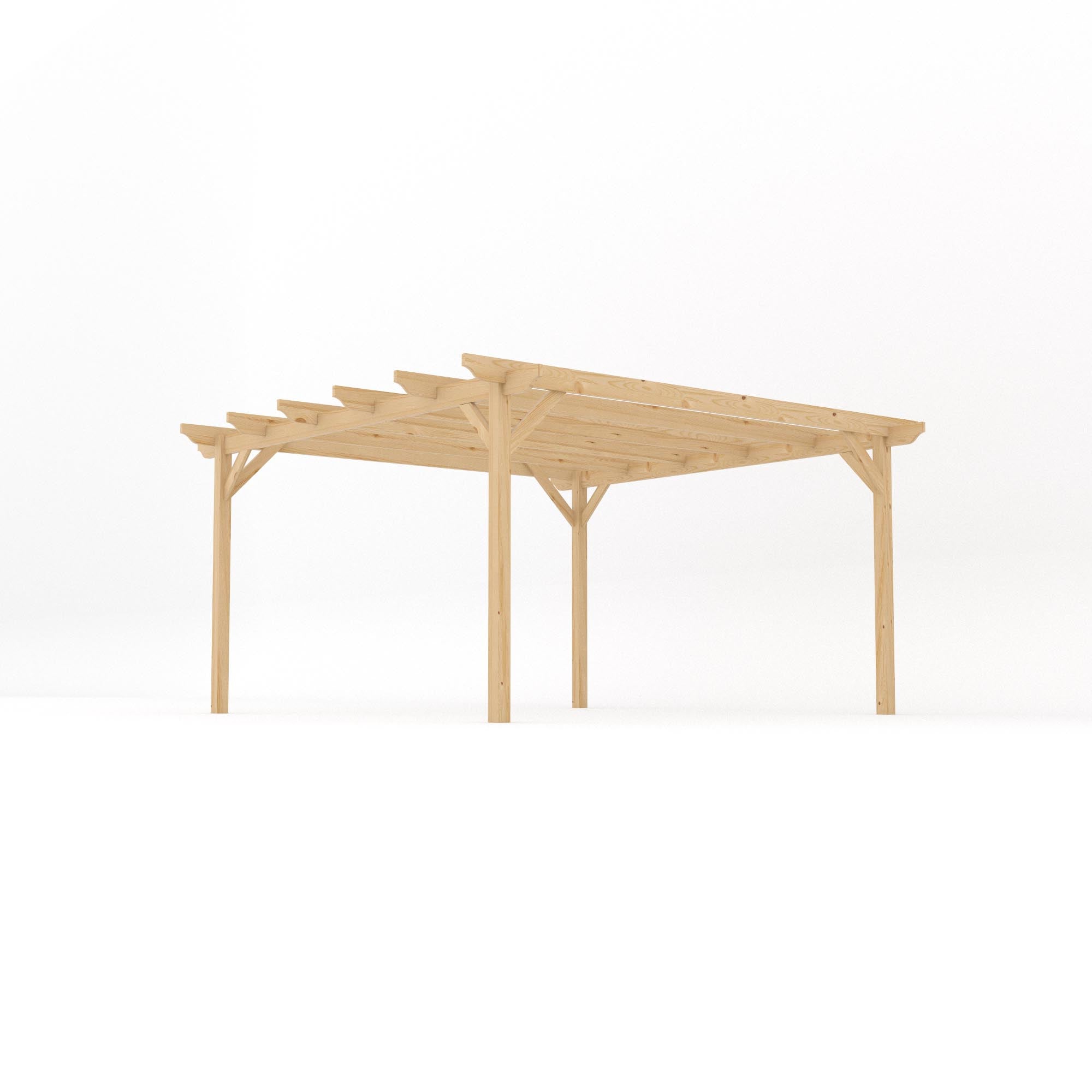 Crafted from pressure-treated Northern European redwood, our freestanding garden pergola combines strength, durability, and timeless style - featuring beautifully sculpted rafter and runner ends for a more traditional, decorative finish.