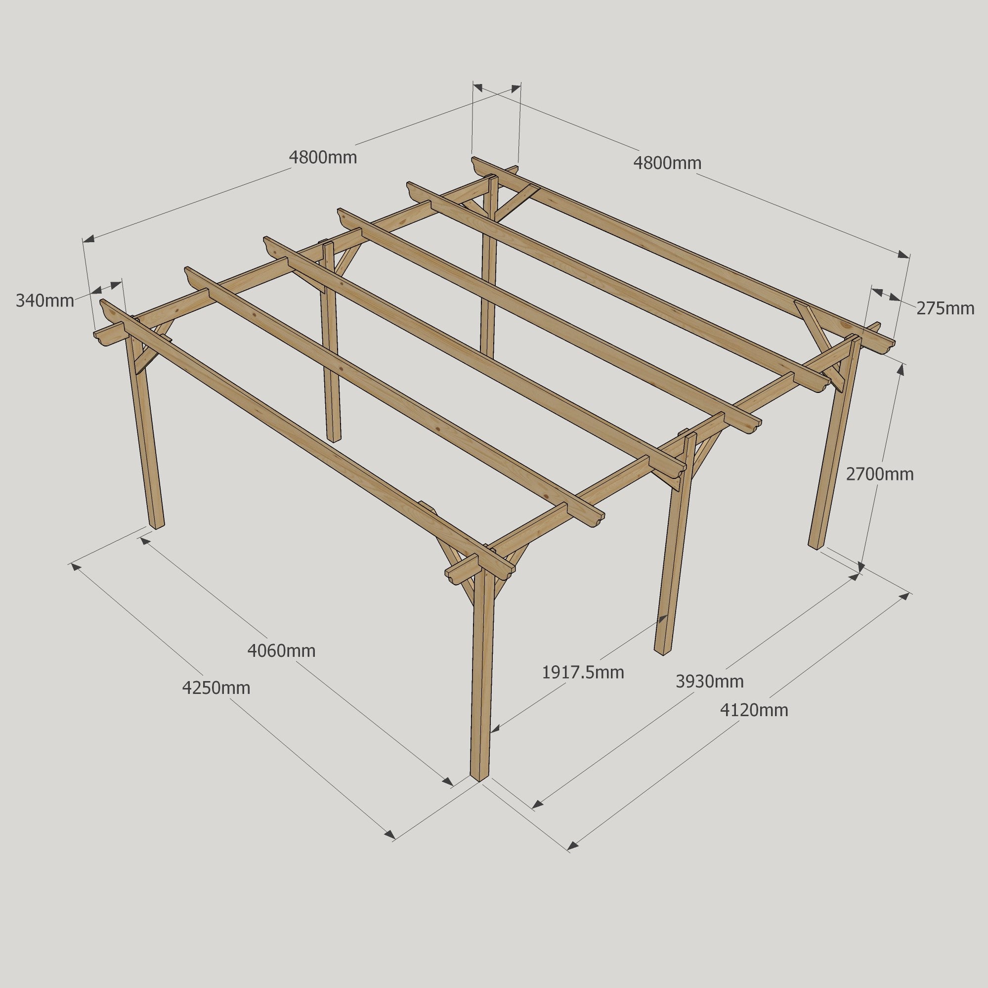 Crafted from pressure-treated Northern European redwood, our freestanding garden pergola combines strength, durability, and timeless style - featuring beautifully sculpted rafter and runner ends for a more traditional, decorative finish.