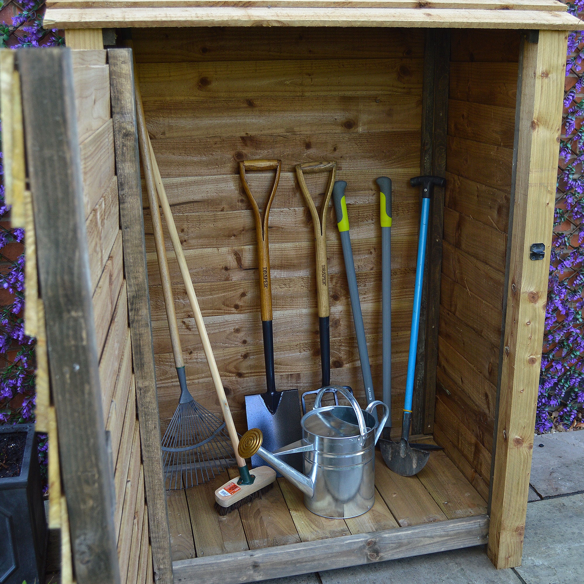 Its solid floor makes it ideal for neatly storing away a larger selection of gardening tools and makes an ideal storage solution for the busy gardener or household.