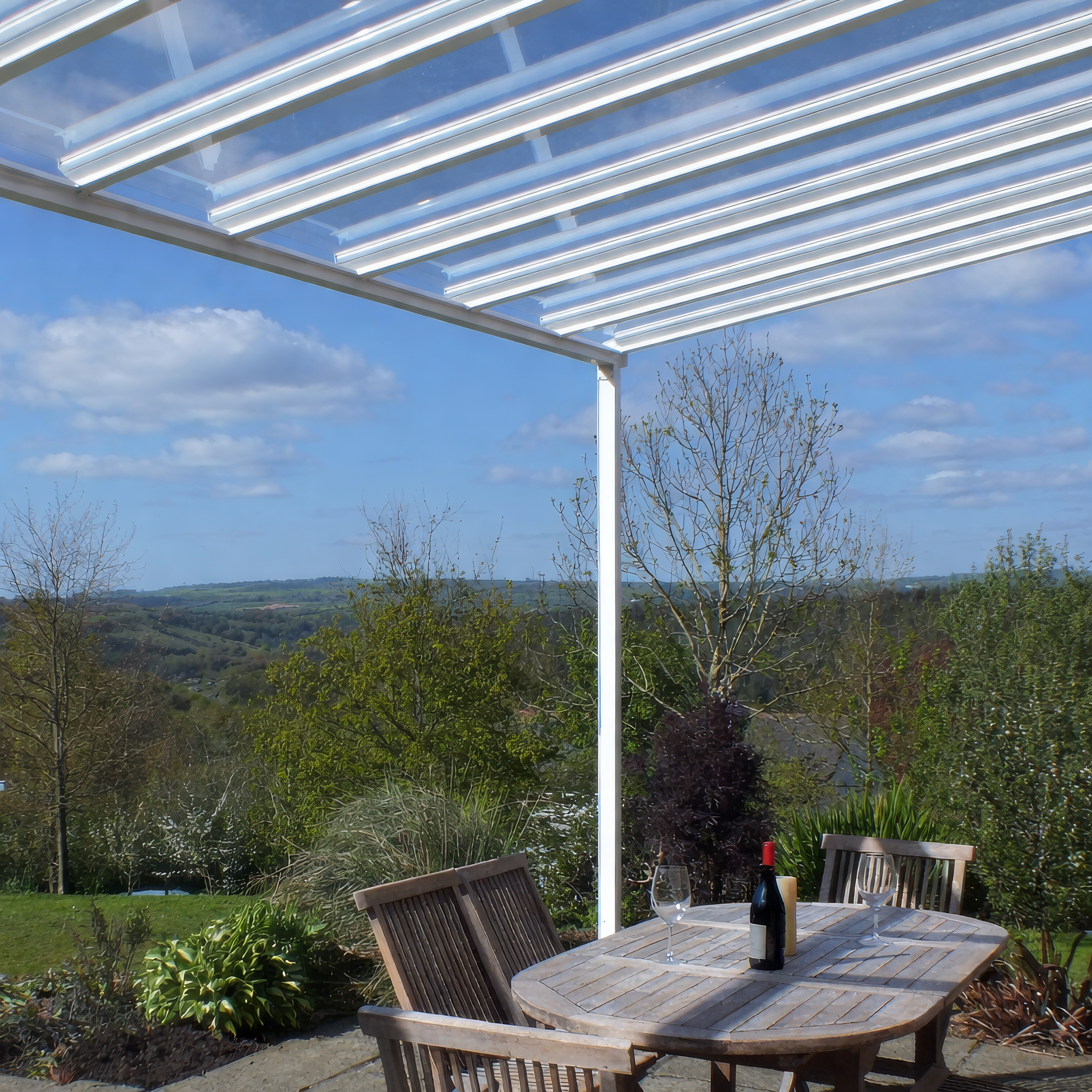 Wall Mounted Aluminium Pergola - White - 2.5m Depth x 2.8m Length