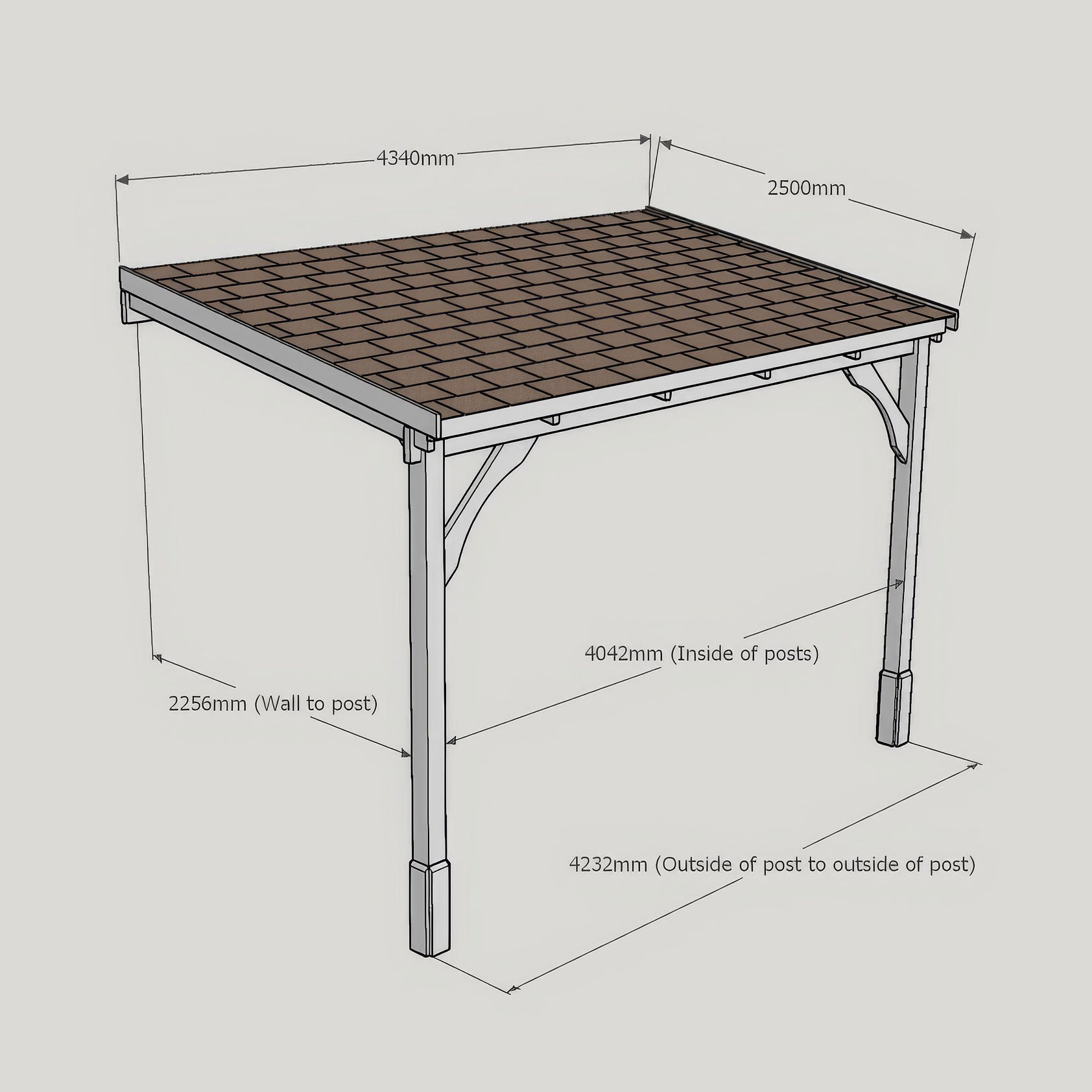 The roof design delivers excellent shelter while creating a bold and attractive feature against your property. Stylish curved corner braces enhance both structural integrity and visual appeal, adding a touch of elegance to the overall design. The felt shingle roof is available in a choice of two colours, allowing you to tailor the finish to perfectly complement your home and garden.