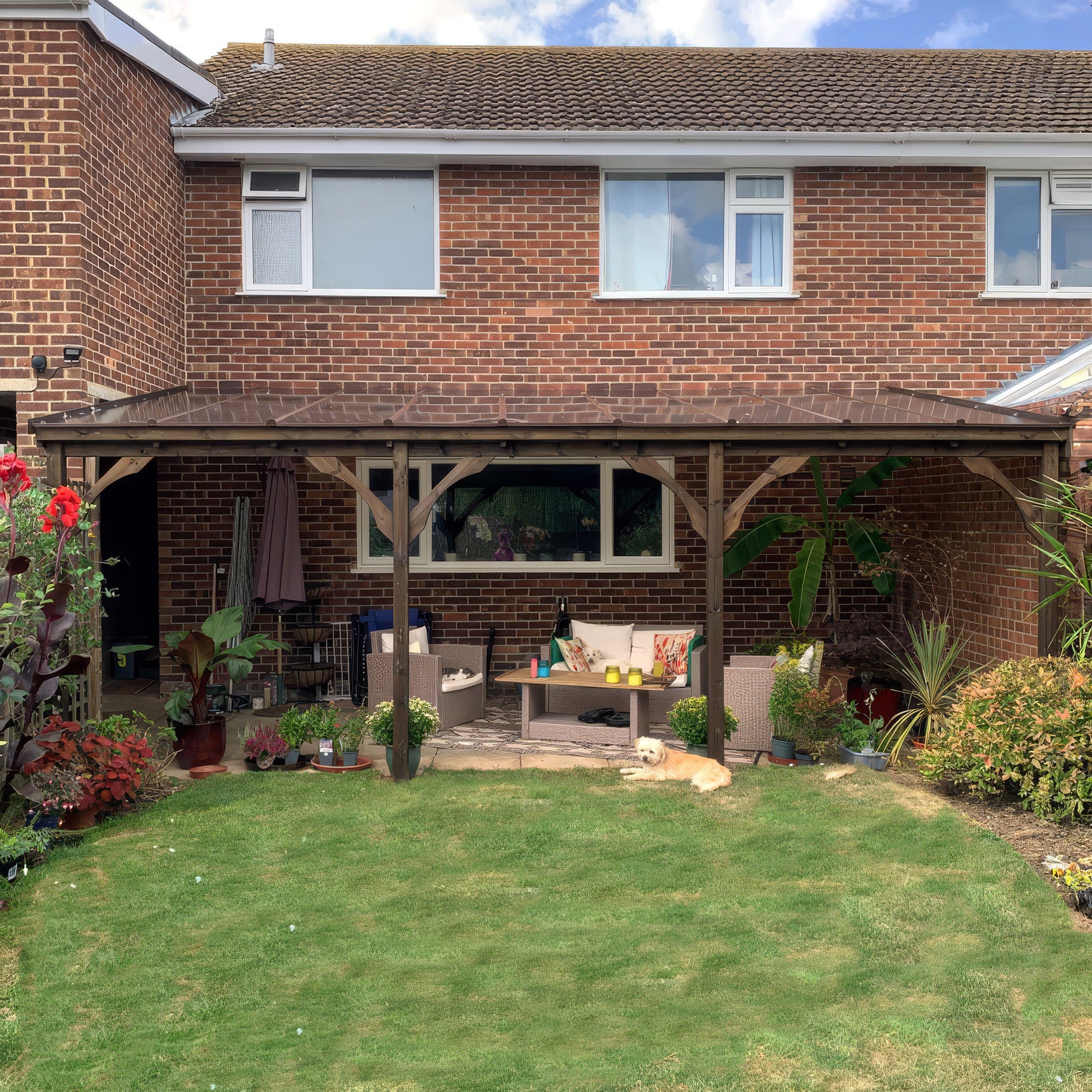 Wall Mounted Polycarbonate Roof Gazebo - Rustic Brown - 4m Depth x 6.5m Width